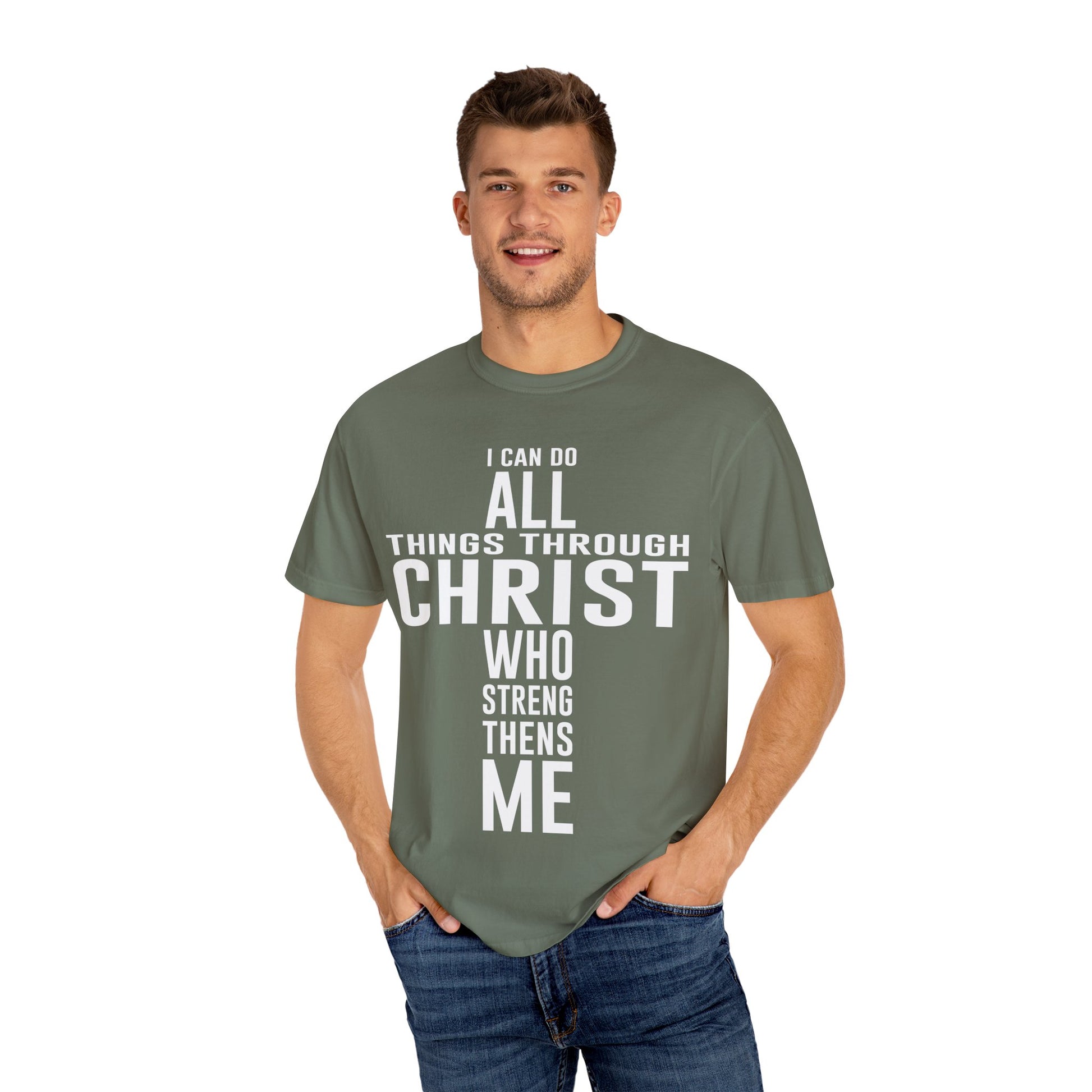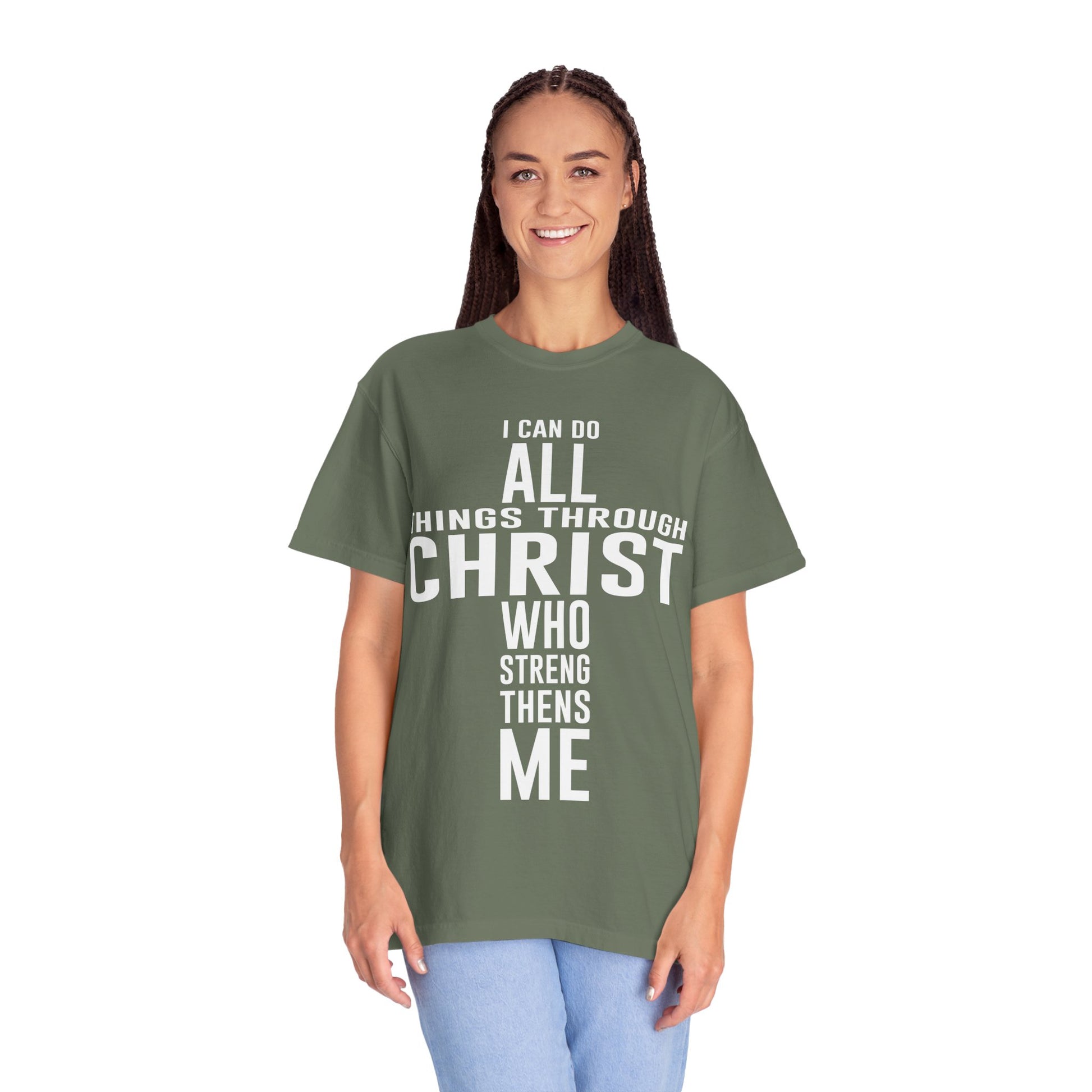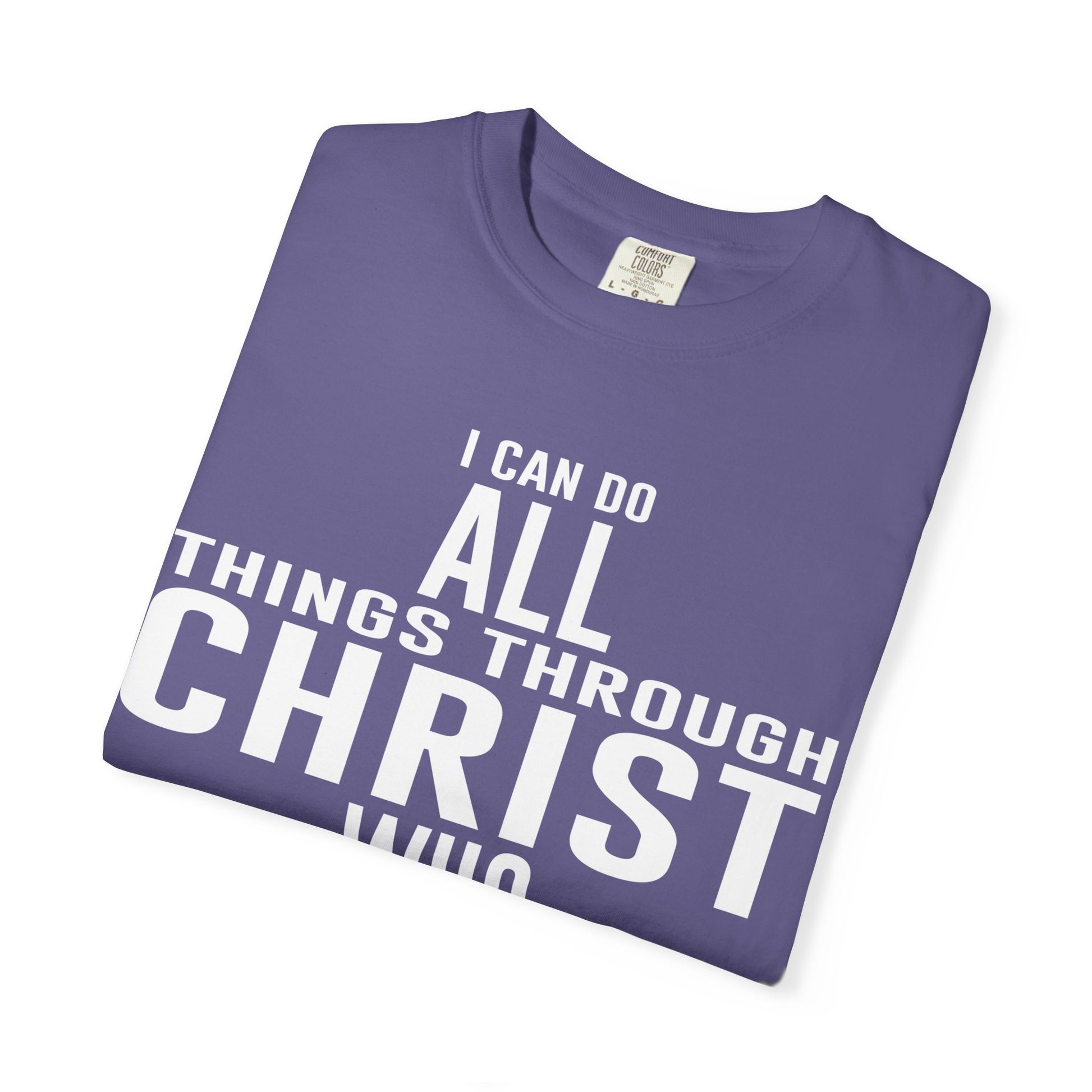 Christian Graphic Tee - I Can Do All Things Through Christ Who Strengthens Me - Comfort Colors 1717 - Garment-dyed fabric for soft color and texture