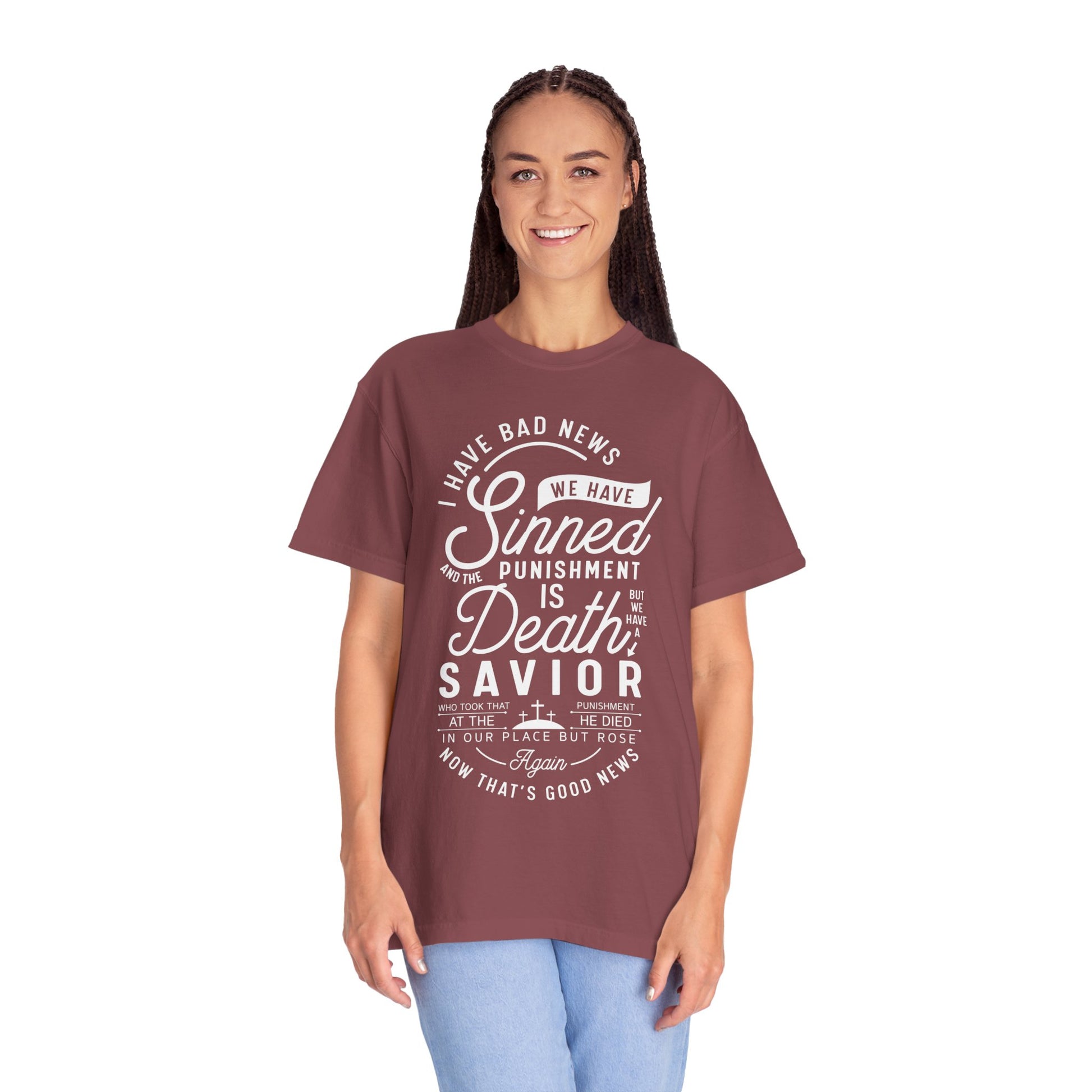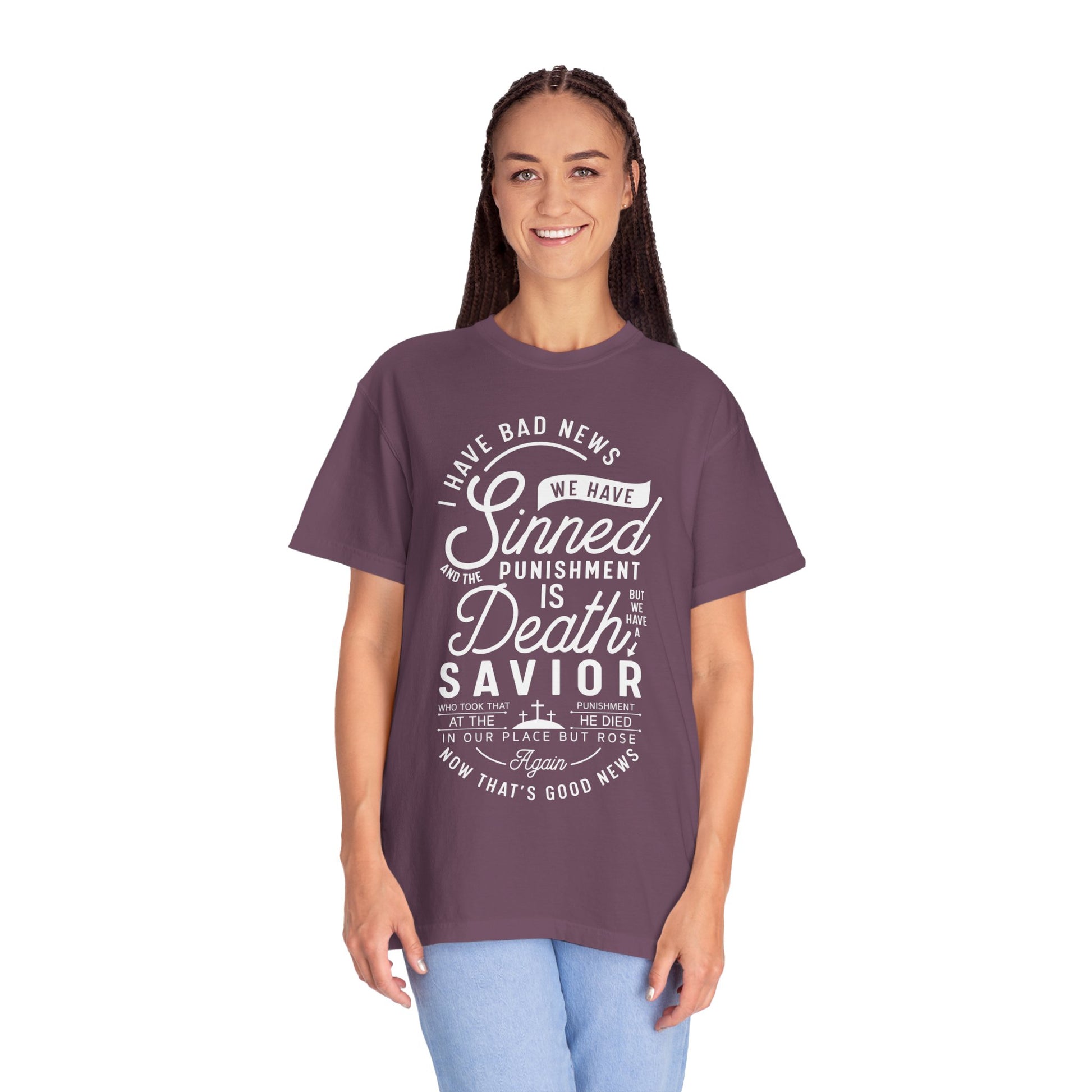 Introducing our comfortable and stylish Unisex 'I Have Bad News We Have Sinned......' T-Shirt, the perfect blend of casual vibes and meaningful expression. Made from soft, high-quality cotton, this tee offers a relaxed fit that's suitable for any occasion. Whether you're lounging at home, heading out with friends, or celebrating a special moment, this shirt radiates positivity and a unique message. Ideal for adults who appreciate comfort and style, it makes a thoughtful gift for holidays, birthdays, or just because. Embrace the uplifting spirit and wear your heart on your sleeve with this unisex T-Shirt that invites conversation and connection.
